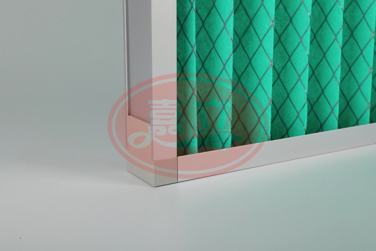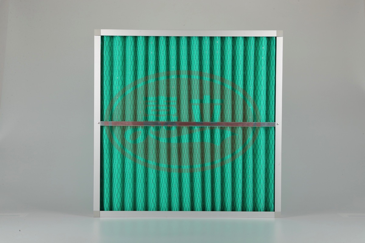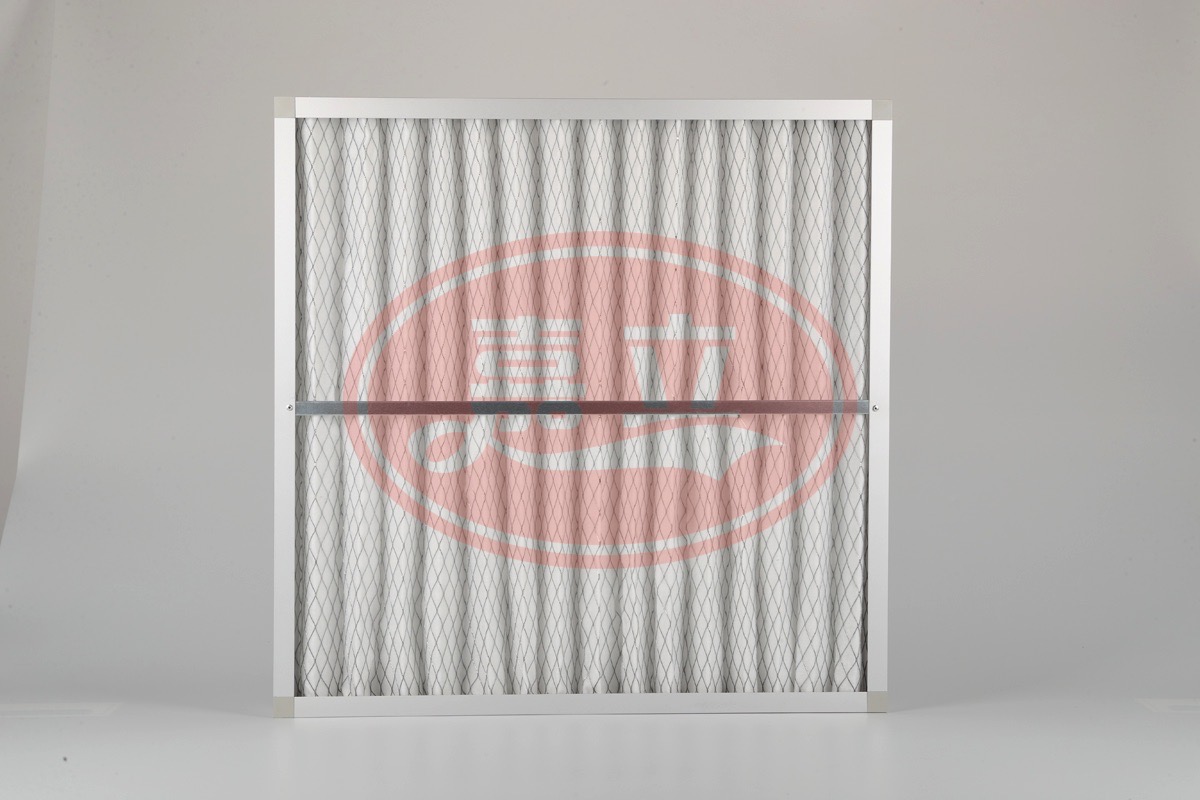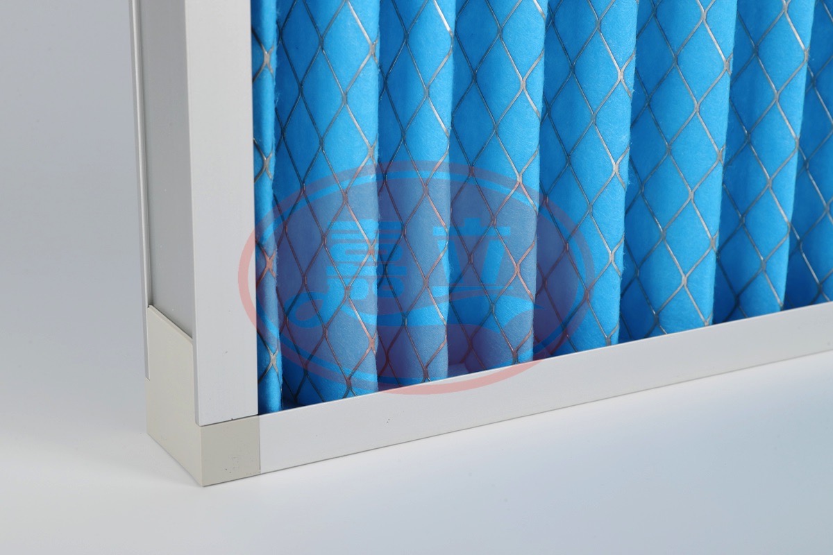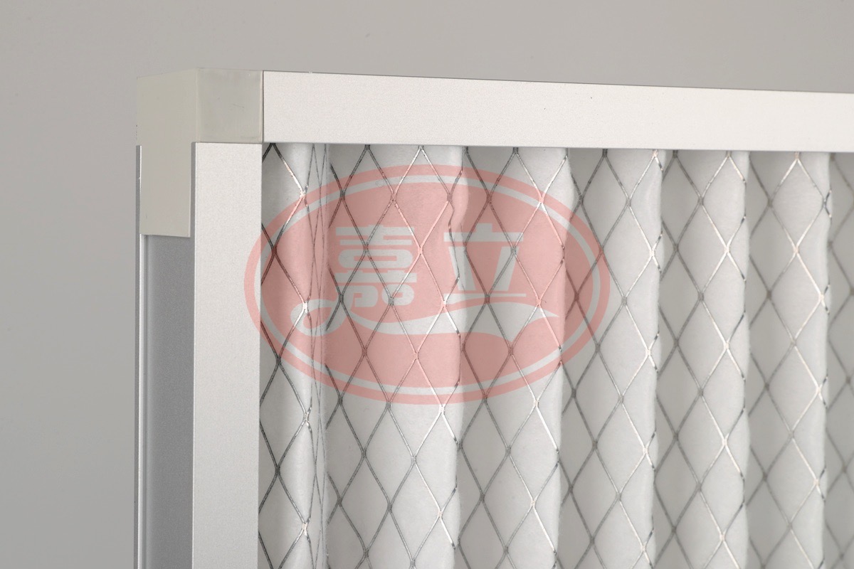 初效过滤器(折叠式)外框采用硬纸框或铝型材,将无纺布化学纤维布,折叠成形加以金属网支撑。