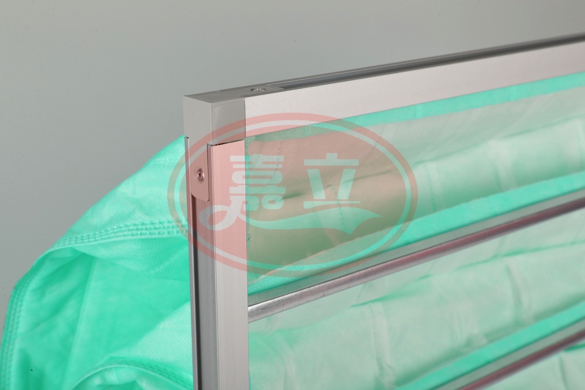 5、结构独特。外框采用专用铝型材或镀锌板框,便于完全回收、利用、优质U型铝合金压条,使滤袋结构阻力低,使用